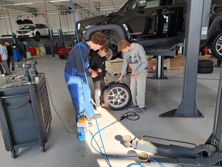 De middag begon met een toelichting op de klantreis binnen het autobedrijf. Daarna gingen de leerlingen in kleine groepen aan de slag met drie technische workshops. Hier voerden zij verschillende praktijkopdrachten uit, zoals wielen wisselen, banden demonteren en monteren, wielen balanceren, een onderhoudschecklist nalopen, een luchtfilter vervangen en remblokken en remschijven verwisselen. Door deze praktische opdrachten kregen de leerlingen een goed beeld van hoe autotechniek er in de praktijk uitziet. Ook gingen de leerlingen met een opdracht over de 6 P’s aan de slag in de showroom en bij de werkplaats receptie.
