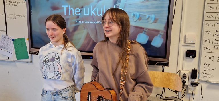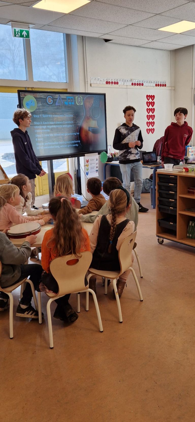 Afgelopen week gaven onze TTO-leerlingen (Tweetalig Onderwijs) uit klas 1 en 2 inspirerende én muzikale Engelstalige lessen aan leerlingen van basisschool St. Bernardus uit Epe. De scholen vonden elkaar in de jaarlijks terugkerende ‘Engelse week’ van de St. Bernardus. Een mooie samenwerking waarbij alle leerlingen genoten van het samen met muziek bezig zijn.